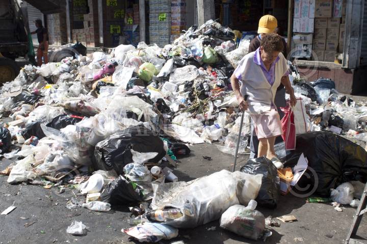 MÉXICO, D.F., 29DICIEMBRE2011.- En el mercado de la merced el tiradero de la basura que se ubica en la calle de San Cifrián ha sido sobrepasado, por lo que trabajadores del Gobierno del DF utilizan un trascabo para llenar camiones de carga y llevarse los desperdicios que se acumularon desde el pasado 24 de diciembre. Aún a pesar de los malos olores que despiden los desechos los marchantes de la merced transportan alimentos y mercancías diversas. FOTO: MOISÉS PABLO/CUARTOSCURO.COM