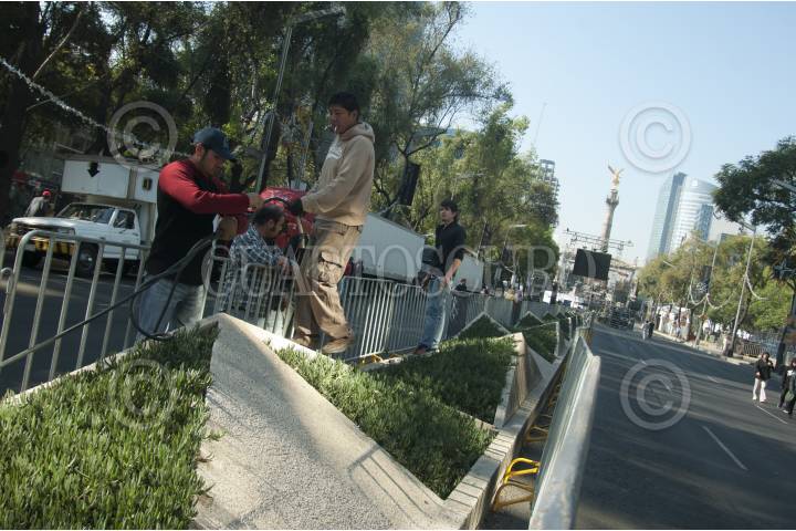 MÉXICO, D.F., 30DICIEMBRE2011.- Paseo de la Reforma se encuentra la mañana de hoy cerrado en sus carriles centrales, desde el Angel de la Independencia hasta la Glorieta de la Palma, debido a la colocación de vallas, luces y sonido para los festejos del día de mañana para recibir el año 2012 con una verbena popular donde actuaran Yuri y Merenglass. FOTO: FRANCISCO RODRÍGUEZ/CUARTOSCURO.COM