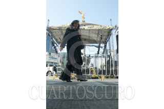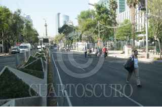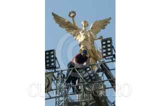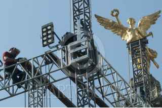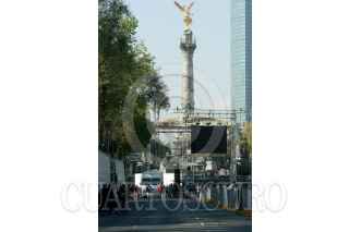 MÉXICO, D.F., 30DICIEMBRE2011.- Paseo de la Reforma se encuentra la mañana de hoy cerrado en sus carriles centrales, desde el Angel de la Independencia hasta la Glorieta de la Palma, debido a la colocación de vallas, luces y sonido para los festejos del día de mañana para recibir el año 2012 con una verbena popular donde actuaran Yuri y Merenglass. FOTO: FRANCISCO RODRÍGUEZ/CUARTOSCURO.COM