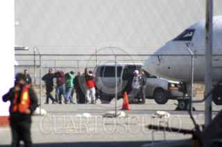 CIUDAD JUAREZ, CHIUHAHUA, 30DICIEMBRE2011.- Esta mañana la PGR trasladó a la ciudad de México a Arturo Bautista “El Mil Amores” junto con tres cómplices más, quienes quedaron a disposición de la Siedo. Los detenidos están acusados de los delitos de delincuencia organizada y violación a la Ley Federal de Armas de Fuego y Explosivos, además en el caso de “El Mil Amores”, las autoridades de Estados Unidos lo requieren. "El Mil Amores" junto con sus cómplices fueron detenidos el miércoles luego de que asesinaran a mujer en la colonia Felipe Ángeles. FOTO: NACHO RUIZ/CUARTOSCURO.COM