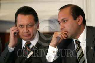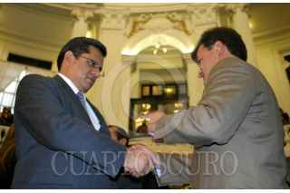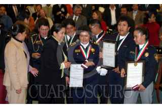 MEXICO, D.F. 22 DICIEMBRE 2004.- Los asambleistas José Espina, Mauricio López, Guadalupe Chavira y Jorge Lara, durante la ceremonia de entrega de medallas a policías realizada en la ALDF. FOTO: Sandra Perdomo/CUARTOSCURO.COM