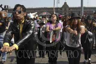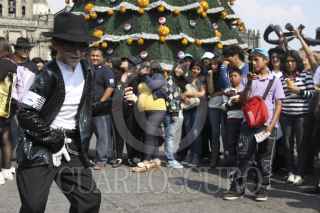 MÉXICO, D.F., 30DICIEMBRE2011.- Fanáticos del cantante estadounidense Michael Jackson recorrieron las calles del centro para recordar al cantante con bailes en su honor. FOTO: IVÁN STEPHENS/CUARTOSCURO.COM