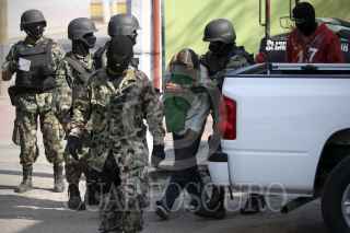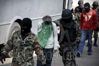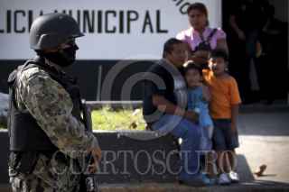 MEDELLÍN, VERACRUZ, 30DICIEMBRE2011.- Personal de la Secretaría de Marina realizó la detención de 7 elementos de la Policía Municipal de Medellín, luego de recibir una denuncia anónima que vinculaba a los uniformados con actos de extorsión y robo a los ciudadanos. Los primeros reportes indicaban que los policías habían sido plagiados de una caseta de seguridad, por lo que familiares y compañeros se encontraban preocupados ya que no sabían su paradero, sin embargo, por la tarde la Armada de México los puso a disposición del Ministerio Público. FOTO: FÉLIX MÁRQUEZ/CUARTOSCURO.COM