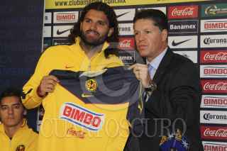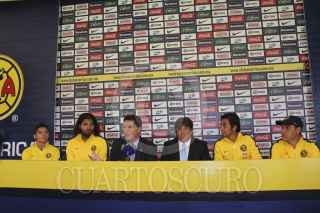 MÉXICO, D.F., 30DICIEMBRE2011.- En conferencia de prensa, Alberto Pelaes, director deportivo del Club América y Migue Herrera, DT del mismo club, presentaron al venezolano Oswaldo Vizcarrondo, como nuevo refuerzo del América para el próximo torneo. FOTO: IVAN MÉNDEZ/CUARTOSCURO.COM