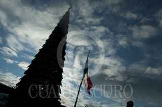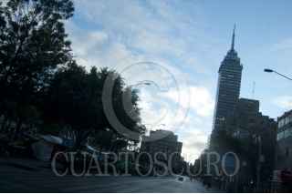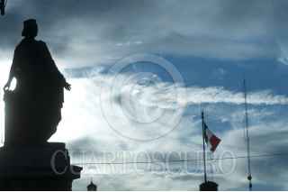 MÉXICO, D.F., 02ENERO2012.- Los vientos que se registraron durante la noche de ayer y madrugada de hoy, disiparon los contaminantes que se habían acumulado el día ayer. El Sistema registro a las 14 hrs 21 puntos de ozono en el centro del valle de México. En la imagen el monumento al Cosmógrafo e Ingeniero Hidraúlico, Enrico Martínez que esta situado en una esquina de la plancha del Zócalo capitalino. FOTO: FRANCISCO RODRÍGUEZ/CUARTOSCURO.COM