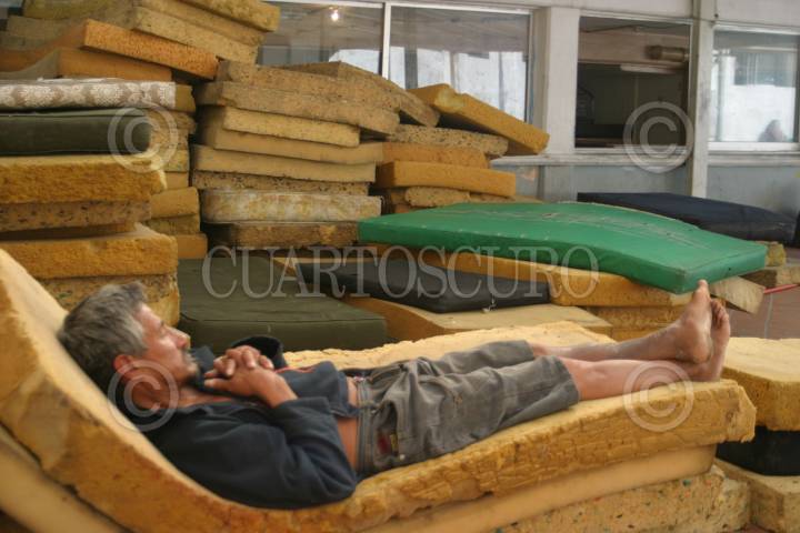 MEXICO, D.F. 23DICIEMBRE2004.- En uno de los dormitorios del albergue temporal que se encuentra en la plaza del estudiante y que forma parte del programa ¨En Frio Invierno Calor Humano¨, un interno realiza trabajos de limpieza. FOTO: Nelly Salas/CUARTOSCURO.COM