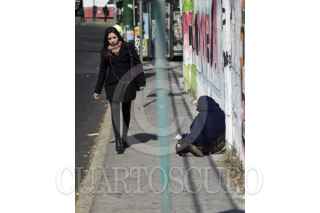MÉXICO, D.F., 03ENERO2012.- Una joven camina frente a una señora de la tercera edad que pide ayuda sobre avenida insurgentes sur. Como muchos mexicanos este inicio de año no todos tienen la posibilidad de iniciarlo con trabajo. FOTO: MISAEL VALTIERRA/CUARTOSCURO.COM