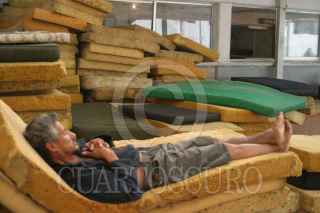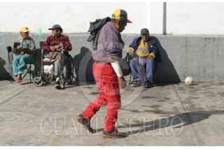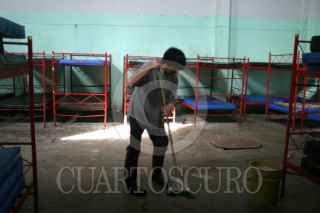 MEXICO, D.F. 23DICIEMBRE2004.- En uno de los dormitorios del albergue temporal que se encuentra en la plaza del estudiante y que forma parte del programa ¨En Frio Invierno Calor Humano¨, un interno realiza trabajos de limpieza. FOTO: Nelly Salas/CUARTOSCURO.COM