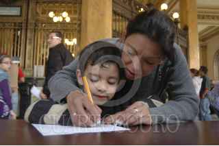 MÉXICO, D.F., 04ENERO2012.- Decenas de niños acompañados de sus papas acuden al Palacio Postal en el centro Histórico para escribir y enviar la tradicional "Carta a los Reyes Magos". FOTO: DIEGO SIMÓN SÁNCHEZ/CUARTOSCURO.COM