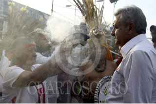 XOCHITEPEC, MORELOS, 04ENERO2012.- Ándres Manuel López Obrador, precandidato a la Presidencia de la República por la coalición de izquierda PRD, PT, y Movimiento Ciudadano, llega a la comunidad de Alpuyeca en donde encabezó un mitín. FOTO: IVÁN STEPHENS/CUARTOSCURO.COM