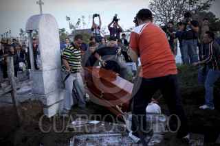 VERACRUZ, VERACRUZ, 04ENERO2011.- Los restos de Gonzalo Rivas Cámara, mejor conocido como el Héroe de la Gasolinera, fueron sepultados en el Panteón Jardín de esta ciudad en donde familiares y amigos le dieron el último adiós. Rivas Cámara falleció luego de las quemaduras de tercer grado que presentaba su cuerpo ocasionadas por el ataque a la gasolinera donde trabajaba, esto en el marco de las protestas de estudiantes normalistas de Ayotzinapa, Guerrero. FOTO: FÉLIX MÁRQUEZ/CUARTOSCURO.COM