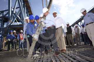 LA CONCORDIA, SINALOA, 05ENERO2012.- Felipe Calderon, Presidente de México durante la supervision de la obra Puente Baluarte Bicentenario donde también recibió el reconocimiento del récord Guinness al enlace carretero atirantado más alto del mundo. FOTO: ALFREDO GUERRERO/CUARTOSCURO.COM