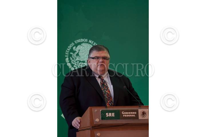 MÉXICO, D.F., 05ENERO2012.- El diputado Porfirio Muñoz Ledo; Agustín Carstens, gobernador del Banco de México y Patricia Castellanos, secretaría de Relaciones Exteriores al termino de la conferencia Evolución Reciente y Perspectivas de la Economía Mexicana en la XXIII Reunión de Embajadores y Cónsules que se realiza en la sede la Cancillería. FOTO: RODOLFO ANGULO/CUARTOSCURO.COM