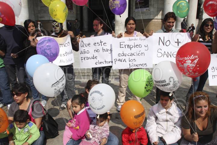 MÉXICO, D.F., 05ENERO2012.- Niños y adultos escribieron sus cartas para lanzarlas con globos en donde le piden a los Reyes Magos, "Alto a la guerra que mata niños", "Empleo y educación para los jóvenes", "Que este año no haya fraude electoral", entre otras peticiones. Las personas se concentraron en la explanada para dejar ir los globos con sus cartas. FOTO: ADRIANA ÁLVAREZ/CUARTOSCURO.COM