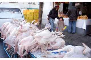 MEXICO D.F. 24DICIEMBRE2004.- En el mercado de San Juan, se comercializan cientos de pavos para la cena de Navidad, se pueden comprar de manera natural y ahumados. FOTO: Germàn Romero/CUARTOSCURO.COM