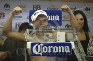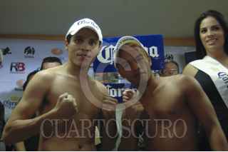 MÉXICO, D.F., 06ENERO2012.- El mexicano Edgar Sosa y el filipino Roilo Golez protagonizaron la ceremonia de pesaje nivel mosca del Consejo Mundial de Boxeo (CMB) previo a su pelea el día de mañana en donde el local expondrá su título. FOTO: DIEGO SIMÓN SÁNCHEZ/ CUARTOSCURO.COM