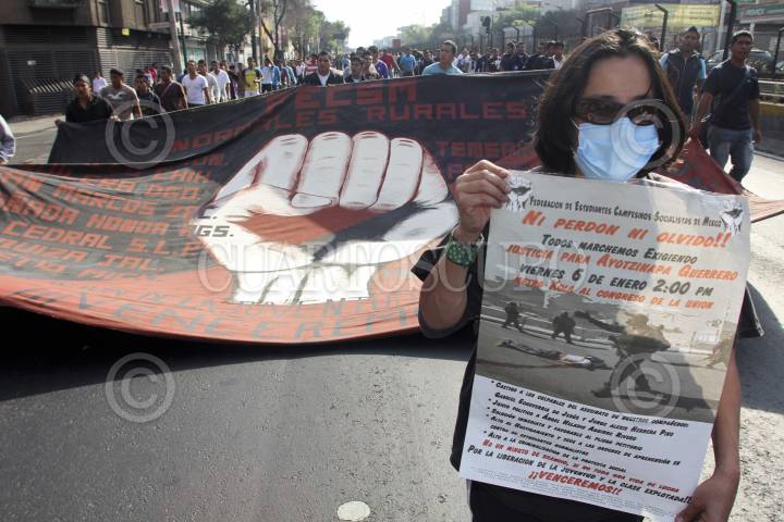 MÉXICO, D.F., 06ENERO2012.- Escuela Normal Rural de Ayotzinapa "Raúl Isidro Burgos" en el estado de Guerrero y organizaciones sociales marcharon del metro Xola hasta la Cámara de Diputados para realizar un mitin a las afueras del congreso y solicitar el esclarecimiento de los hechos del pasado 12 de diciembre en la autopista del sol. FOTO: SAÚL LÓPEZ/ CUARTOSCURO.COM