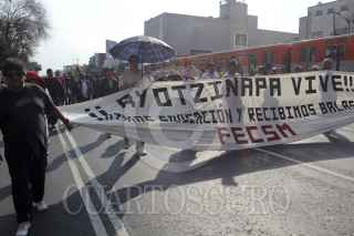 MÉXICO, D.F., 06ENERO2012.- Escuela Normal Rural de Ayotzinapa "Raúl Isidro Burgos" en el estado de Guerrero y organizaciones sociales marcharon del metro Xola hasta la Cámara de Diputados para realizar un mitin a las afueras del congreso y solicitar el esclarecimiento de los hechos del pasado 12 de diciembre en la autopista del sol. FOTO: SAÚL LÓPEZ/ CUARTOSCURO.COM