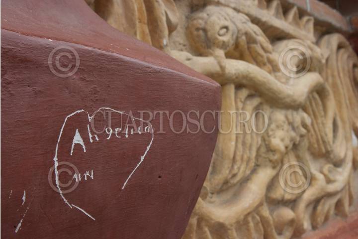 JALPAN DE SERRA, QUERETARO. 07ENERO2012.- La misión de Jalpan de Serra, iglesia construida en 1744 por la orden de los Agustinos y declarada Patrimonio de la Humanidad (2003), presenta daños en su interior, pues desde hace tiempo no se le da mantenimiento. Los vecinos exhortan a no rayar y destruir el inmueble que es símbolo del barroco mexicano y atractivo turístico del lugar, declarado "Pueblo mágico" desde 2010. FOTO: DEMIAN CHAVEZ/CUARTOSCURO.COM