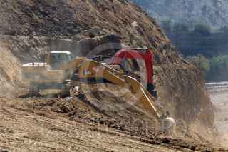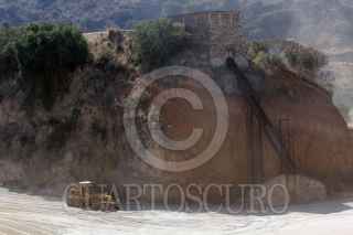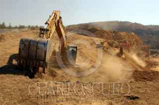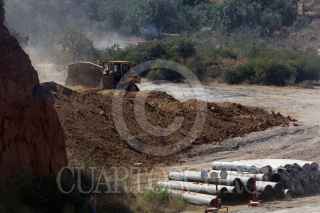 IXTAPALUCA, ESTADO DE MÉXICO 07ENERO2012.- Retroexcavadoras y Trascabos, trabajan a marchas forzadas en las minas La Cañada y El Milagro, que serán los sitios de disposición final de las casi 4 mil toneladas de basura diarias que se genera en la capital del País. Esto luego del anuncio hecho por el gobierno capitalino tras la crisis de basura que enfrenta el D.F. Personal de la dirección de seguridad municipal de Tlalnepantla, resguarda los accesos principales a las minas para evitar conflictos con los habitantes de la colonia Jorge Jiménez Cantú. FOTO: SAÚL LÓPEZ/ CUARTOSCURO.COM