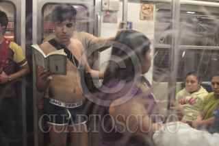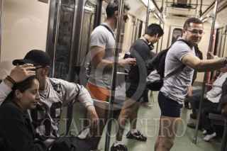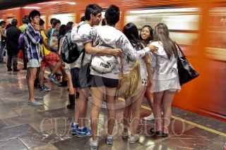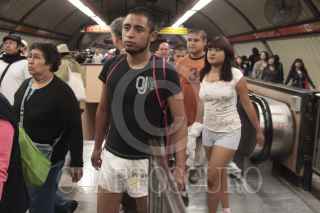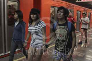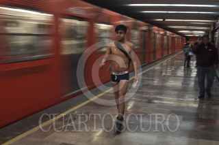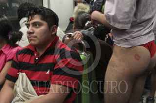 MÉXICO, D.F., 08ENERO2012.- Cientos de jóvenes realizaron una paseo sin pantalones en las estaciones del Sistema de Transporte Colectivo Metro como parte de el movimiento No Pants Subway Ride que tuvo sus orígenes en la ciudad de los Ángeles en Estados Unidos. FOTO: ENRIQUE ORDÓÑEZ/CUARTOSCURO.COM