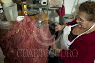 JALPAN DE SERRA, QUERETARO. 09ENERO2012.- La elaboración de la cecina, tradicional carne que se consume y elabora de forma artesanal en las carnicerías del mercado de Jalpan de Serra, es uno de los productos de mayor demanda y tradición en la zona serrana. Esta carne se exporta a EU y llega a los mercados de Querétaro a través de los restaurantes más exclusivos de gran turismo. FOTO: DEMIAN CHAVEZ/CUARTOSCURO.COM