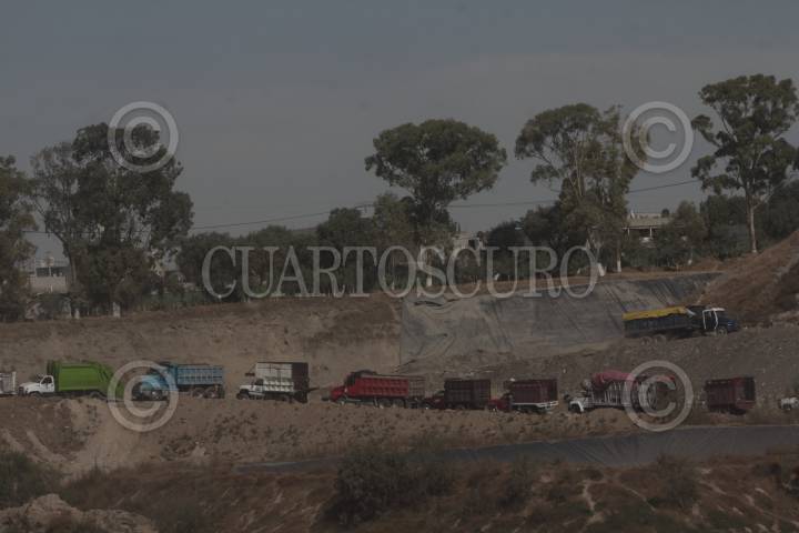 TECAMAC, ESTADO DE MÉXICO, 10ENERO2012.- Decenas de camiones de los municipios de Tecamac y Ecatepec acuden a descargar los desechos de basura en el relleno sanitario wastecomexico ubicado en este municipio donde autoridades del lugar mencionan que ni en este ni en los tiraderos de Tecamac se esta aceptando la basura del Distrito Federal al argumentar que son chicos y de poca extensión en hectáreas ademas que unos de ellos están apunto de acabe su vida útil como este que se pretende sea cerrado en Año y medio. FOTO: ENRIQUE ORDÓÑEZ/CUARTOSCURO.COM