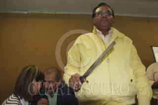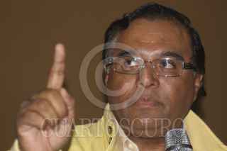 OAXACA, OAXACA, 09ENERO2012.- Benjamín Robles Montoya, precandidato a Senador por el Partido de la Revolución Democrática (PRD) rechazó ser apoyado por el actual gobernador del Estado, Gabino Cué Monteagudo tal y como han acusado el resto de precandidatos del Sol Azteca. El michoacano y quien milita en el Movimiento Ciudadano presentó su proyecto el cual consiste en 10 puntos de trabajo, esto acompañado de legisladores locales y de su esposa. FOTO: ARTURO PEREZ ALFONSO/CUARTOSCURO.COM