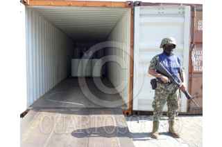 MANZANILLO, COLIMA, 10ENERO2012.- La Secretaría de Marina y la Procuraduría General de la República (PGR) aseguraron contenedores provenientes de China, los cuales contenían un total de 32 mil 670 kg. de metilamina, precursor químico utilizado en la elaboración de drogas sintéticas. FOTO: SEMAR/CUARTOSCURO.COM