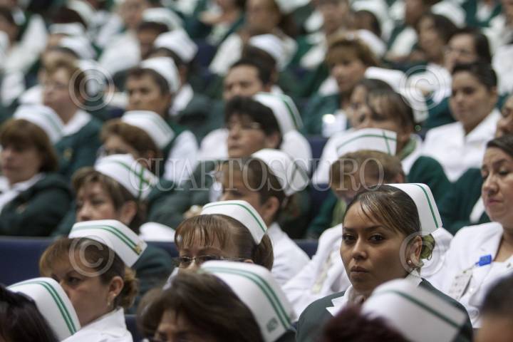 MÉXICO, D.F., 10ENERO2012.- Daniel Karam Tomeuh, director del IMSS, encabezó la ceremonia del Día de la Enfermera, misma que se celebra de manera oficial el 6 de enero, en el auditorio del Congreso del Centro Médico del Siglo XXI, con la presencia de cientos de enfermeras. FOTO: MOISÉS PABLO/CUARTOSCURO.COM