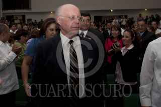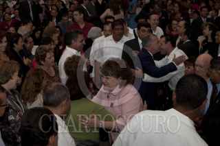 VILLAHERMOSA, TABASCO, 10ENERO2012.- Candita Gil, rectora de la UJAT, en compañía de Ándres Granier Melo, gobernador local, ofreció su rectora su cuarto informe de su segunda gestión. FOTO: MARCO POLO GUZMAN HERNANDEZ/CUARTOSCURO.COM