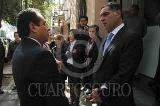 MÉXICO, D.F., 11ENERO2012.- Gabino Cue Monteagudo, Gobernador del Estado de Oaxaca acudió esta mañana a la representación de estado en Distrito Federal, donde fue recibido por Jorge Catillo Díaz, Representante del Gobierno de Oaxaca en el Distrito Federal y por personal de está dependencia. FOTO: GUILLERMO PEREA/CUARTOSCURO.COM