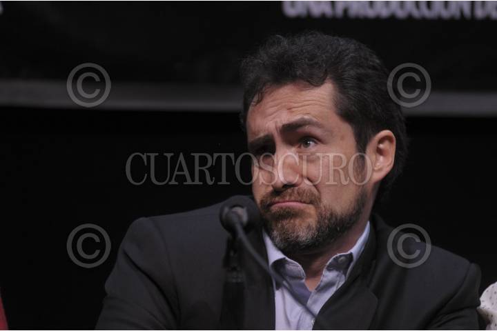 MÉXICO, D.F., 11ENERO2012.- El actor, Demián Bichir, acudió a la conferencia de prensa, donde se anunció el inició de los ensayos de la obra de Teatro "Nadando con Tiburones" basada en la película de George Huang y adaptada por Michael Lesslies, se presentara en el Teatro de los Insurgentes sin fecha precisa para su estreno. El actor declaró estar contento de regresar al teatro de los Insurgentes donde hace más de 20 años no pisaba el escenario. FOTO: FRANCISCO RODRÍGUEZ/CUARTOSCURO.COM