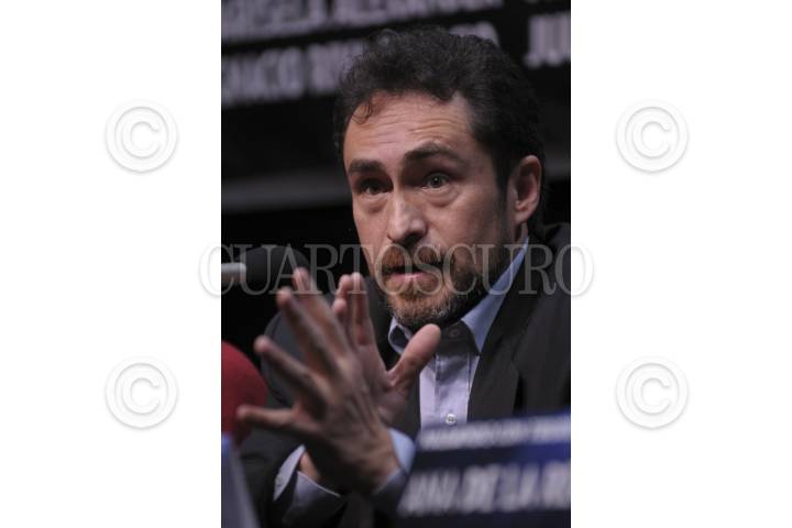 MÉXICO, D.F., 11ENERO2012.- El actor, Demián Bichir, acudió a la conferencia de prensa, donde se anunció el inició de los ensayos de la obra de Teatro "Nadando con Tiburones" basada en la película de George Huang y adaptada por Michael Lesslies, se presentara en el Teatro de los Insurgentes sin fecha precisa para su estreno. El actor declaró estar contento de regresar al teatro de los Insurgentes donde hace más de 20 años no pisaba el escenario. FOTO: FRANCISCO RODRÍGUEZ/CUARTOSCURO.COM