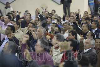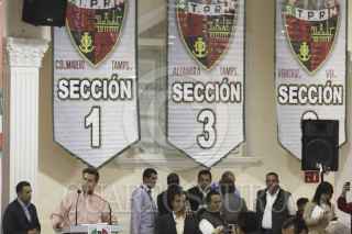 MÉXICO, D.F., 12ENERO2012.- Enrique Peña Nieto, precandidato del PRI a la presidencia de la república, se reunió con trabajadores de las 52 secciones del sindicato petrolero, acompañado por el líder del gremio Carlos Romero Deschamps, y el presidente del CEN del PRI, Pedro Joquin Coldwell. FOTO: SAÚL LÓPEZ/CUARTOSCURO.COM