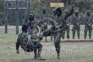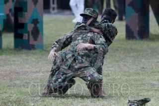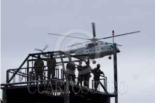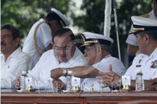 ALVARADO, VERACRUZ, 13ENERO2012.- Elementos de Marina Armada de México realizaron una demostración de ejercicios tácticos durante la ceremonia de clausura de cursos de nivelación en donde se graduaron 59 elementos de Infantería como ingenieros topógrafos; dicho acto se realizo en la Heroica Escuela Naval Militar. FOTO: RODOLFO ANGULO/CUARTOSCURO.COM