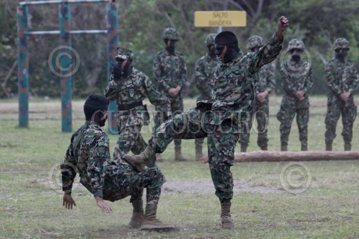 ALVARADO, VERACRUZ, 13ENERO2012.- Elementos de Marina Armada de México realizaron una demostración de ejercicios tácticos durante la ceremonia de clausura de cursos de nivelación en donde se graduaron 59 elementos de Infantería como ingenieros topógrafos; dicho acto se realizo en la Heroica Escuela Naval Militar. FOTO: RODOLFO ANGULO/CUARTOSCURO.COM