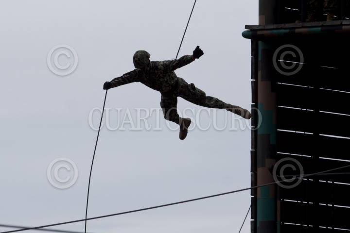 ALVARADO, VERACRUZ, 13ENERO2012.- Elementos de Marina Armada de México realizaron una demostración de ejercicios tácticos durante la ceremonia de clausura de cursos de nivelación en donde se graduaron 59 elementos de Infantería como ingenieros topógrafos; dicho acto se realizo en la Heroica Escuela Naval Militar. FOTO: RODOLFO ANGULO/CUARTOSCURO.COM