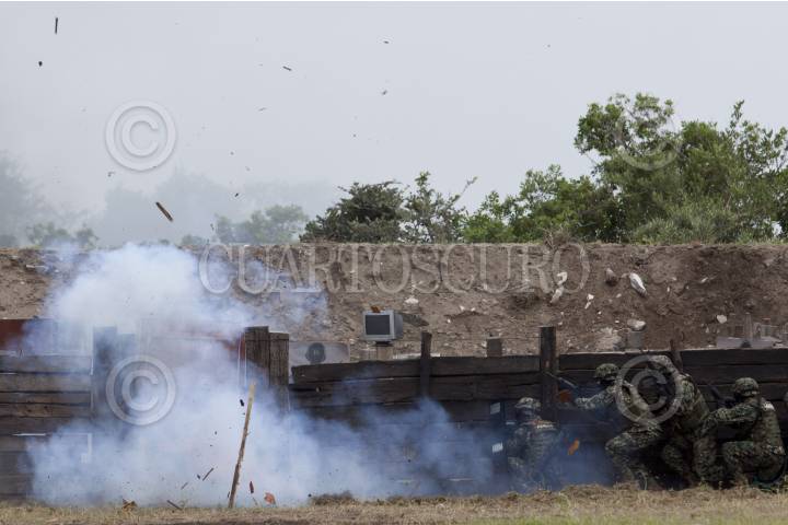ALVARADO, VERACRUZ, 13ENERO2012.- Elementos de Marina Armada de México realizaron una demostración de ejercicios tácticos durante la ceremonia de clausura de cursos de nivelación en donde se graduaron 59 elementos de Infantería como ingenieros topógrafos; dicho acto se realizo en la Heroica Escuela Naval Militar. FOTO: RODOLFO ANGULO/CUARTOSCURO.COM