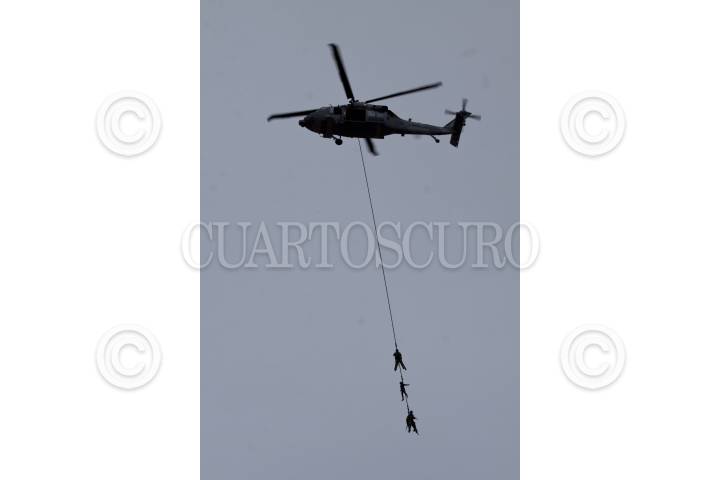 ALVARADO, VERACRUZ, 13ENERO2012.- Elementos de Marina Armada de México realizaron una demostración de ejercicios tácticos durante la ceremonia de clausura de cursos de nivelación en donde se graduaron 59 elementos de Infantería como ingenieros topógrafos; dicho acto se realizo en la Heroica Escuela Naval Militar. FOTO: RODOLFO ANGULO/CUARTOSCURO.COM