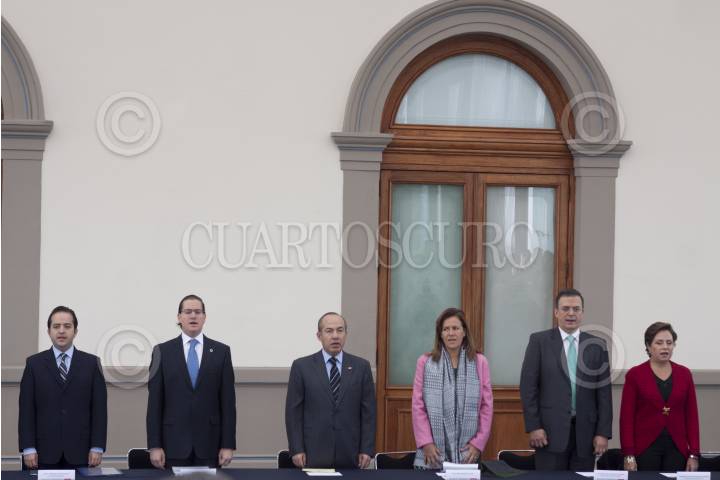 MÉXICO, D.F., 13ENERO2012.- Jesús Javier Castillo Cabrera, jefe del Estado Mayor Presidencial, abraza a Manuel Mondragón Ikalb, secretario de Seguridad Pública local, al finalizar la sesión del Consejo Nacional contra las Adicciones, que se realizó en el Alcázar del Castillo de Chapultepec. FOTO: MOISÉS PABLO/CUARTOSCURO.COM
