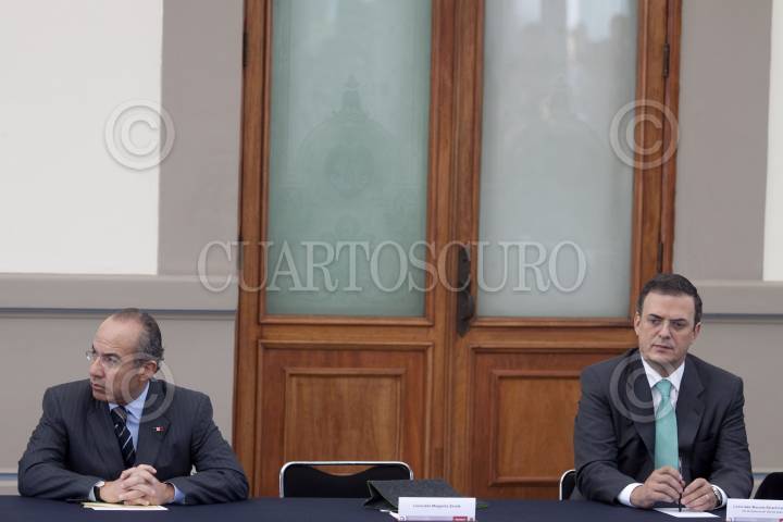 MÉXICO, D.F., 13ENERO2012.- Jesús Javier Castillo Cabrera, jefe del Estado Mayor Presidencial, abraza a Manuel Mondragón Ikalb, secretario de Seguridad Pública local, al finalizar la sesión del Consejo Nacional contra las Adicciones, que se realizó en el Alcázar del Castillo de Chapultepec. FOTO: MOISÉS PABLO/CUARTOSCURO.COM