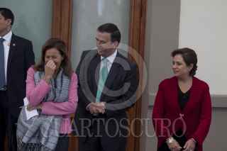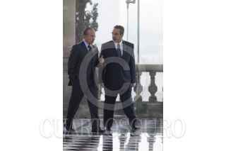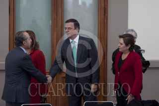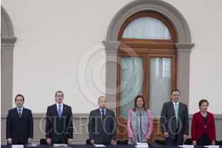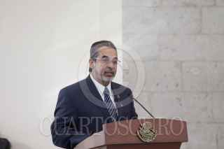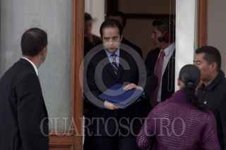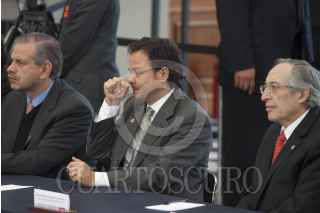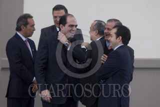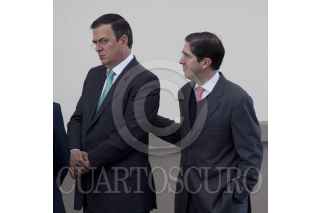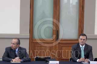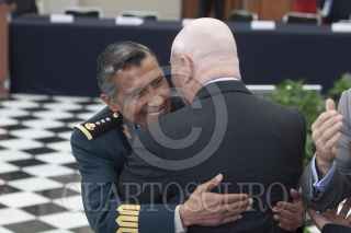 MÉXICO, D.F., 13ENERO2012.- Jesús Javier Castillo Cabrera, jefe del Estado Mayor Presidencial, abraza a Manuel Mondragón Ikalb, secretario de Seguridad Pública local, al finalizar la sesión del Consejo Nacional contra las Adicciones, que se realizó en el Alcázar del Castillo de Chapultepec. FOTO: MOISÉS PABLO/CUARTOSCURO.COM