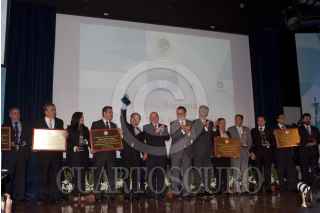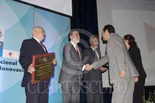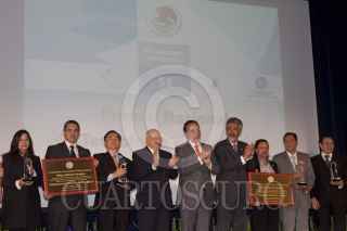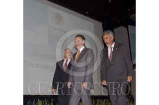 MÉXICO, D.F., 13ENERO2012.- Rodolfo Tuirán Gutiérrez, subsecretario de Educación Superior, Bruno Ferrari, secretario de Economía, y Enrique Villa Rivera, director del Conacyt, entregaron el Premio Nacional de Innovación Tecnológica en la sede de la SE. FOTO: MOISÉS PABLO/CUARTOSCURO.COM
