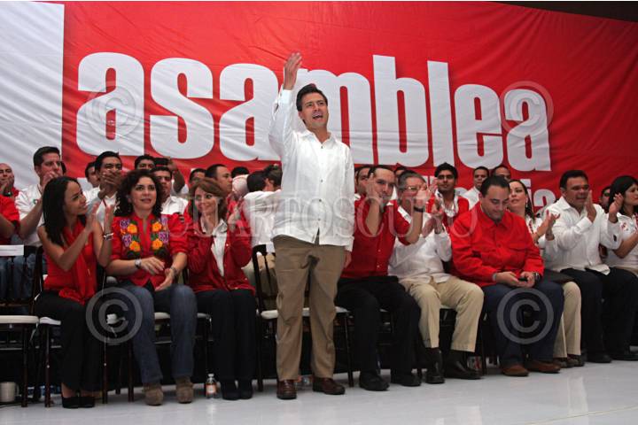 MÉRIDA, YUCATÁN, 13ENERO2012.- Enrique Peña Nieto, candidato presidencial del PRI, se encabezó la toma de protesta de jóvenes en la 7a. Asamblea Nacional del Frente Juvenil Revolucionario. FOTO: FRANCISCO BALDERAS/CUARTOSCURO.COM