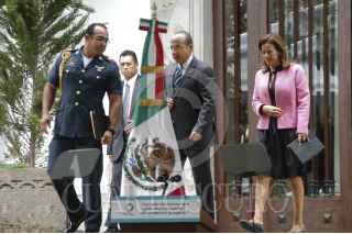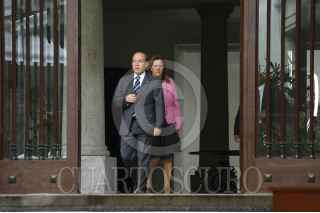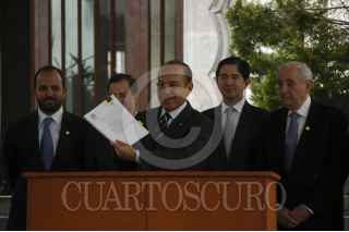 MÉXICO, D.F., 15ENERO2012.- Felipe Calderón Hinojosa, Presidente de México, acompañado de su esposa Margarita Zavala, realizo la firma del Decreto por el que se Expide la Ley de Asociaciones Publico Privadas, la cual fue realizada en las escalinatas de la Residencia Oficial de los Pinos. FOTO: GUILLERMO PEREA/CUARTOSCURO.COM
