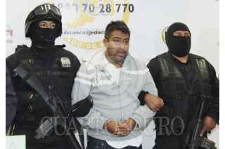 TOLUCA, ESTADO DE MÉXICO, 16ENERO2012.- Salvador Neme Sástre, Secretario de Seguridad Ciudadana y Alfredo Castillo Cervantes, titular de la Procuraduría mexiquense, presentaron ante los medios de comunicación a Raymundo Mateo Cruz, alias "El Mata", presunto líder del grupo delictivo La Familia Michoacana en el poniente del Estado de México. FOTO: CUARTOSCURO.COM