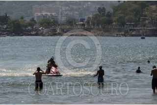 ACAPULCO, GUERRERO., 16ENERO2012.- A pesar de ser día lunes siguen llegando turistas nacionales y extranjeros a disfrutar de las cálidas aguas de las playas de Santa Lucía. Los turistas disfrutaron de una la regata que se dio en toda la bahía. FOTO: BERNANDINO HERNÁNDEZ/CUARTOSCURO.COM