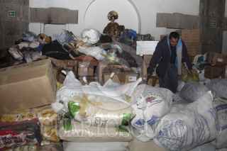MÉXICO, D.F., 17ENERO2012.- Decenas de personas han apoyado con despensas que contienen frijol, arroz, agua, comida enlatada, ropa y cobijas para las comunidades tarahumaras que sufren de problemas de pobreza. El centro de acopio ubicado en la Universidad Claustro de Sor Juana es la matriz que recibe todos los apoyos para ser enviados. FOTO: ENRIQUE ORDÓÑEZ/CUARTOSCURO.COM
