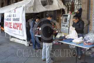 MÉXICO, D.F., 17ENERO2012.- Poca ayuda se ha hecho presente en el centro de acopio en solidaridad a los Tarahumaras instalado en día de ayer en el Zócalo. Los indígenas Tarahumaras que viven en la sierra de Chihuahua viven una intensa hambruna tras una alargada sequía, desestimada el día de ayer por un funcionario federal. FOTO: MOISÉS PABLO/CUARTOSCURO.COM